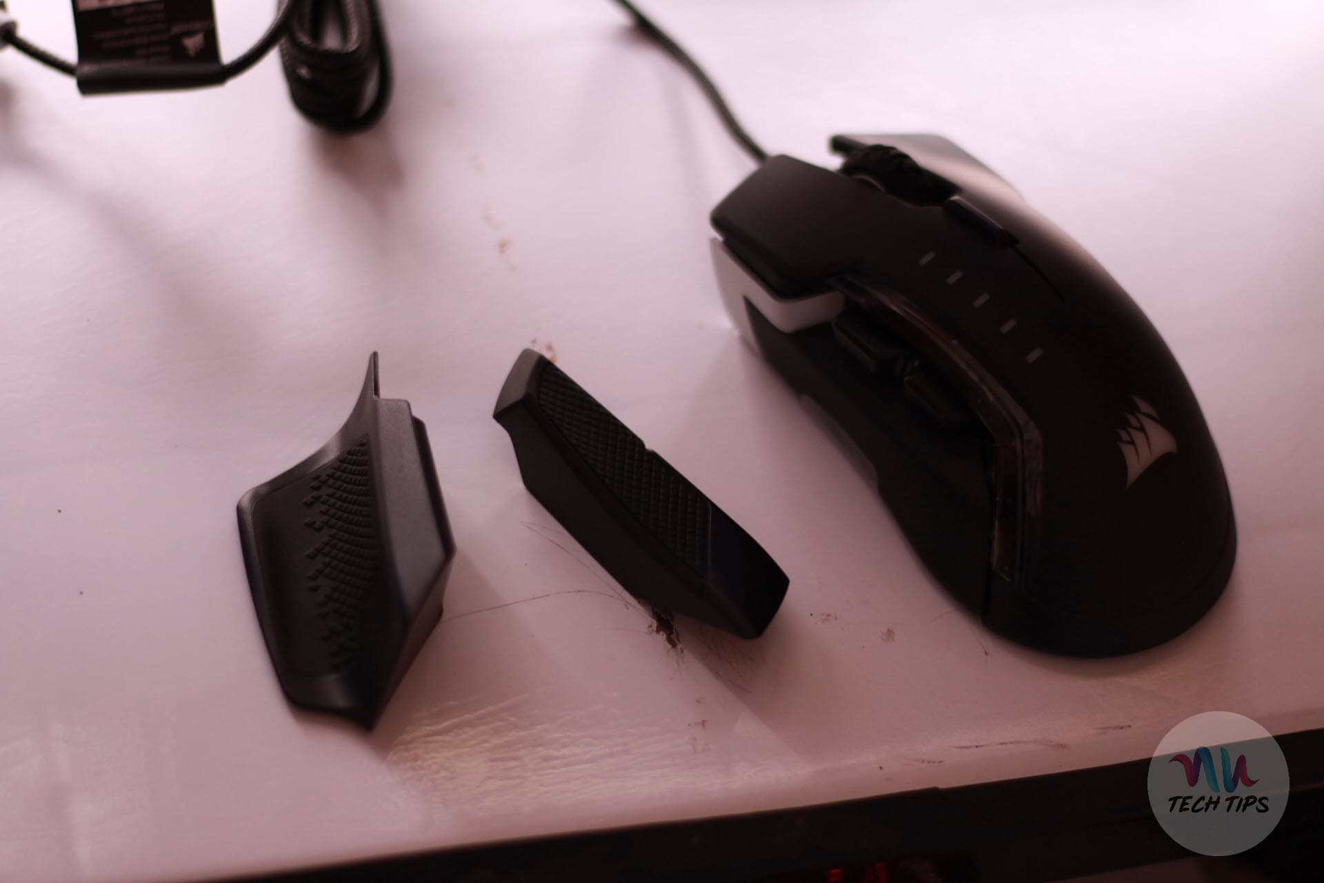 The mouse comes with a plastic body with 6 programmable buttons and RGB lighting and indicators. It has the Left-click button, Right-click button, DPI Switch button, Forward button, Backward button, Middle click/Mouse Wheel button. Right below the forward and backward buttons, we have the magnetic grip connector to attach the thumb rest grips as required. The mouse weighs 122 grams without cable and additional grips, which is not that much heavy.