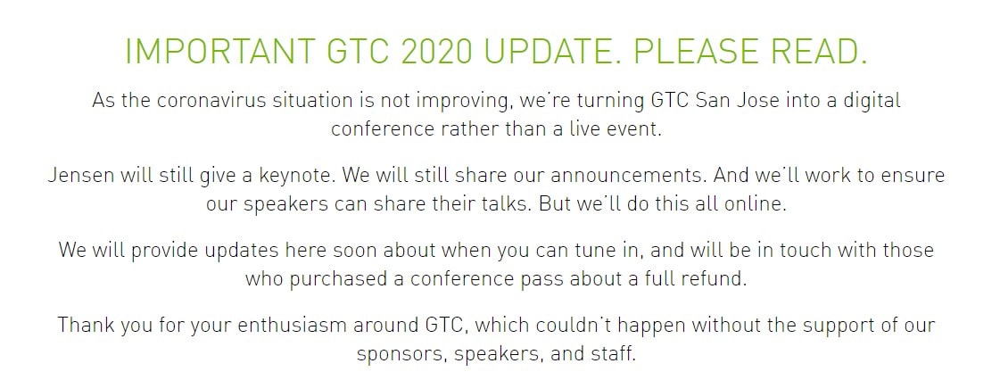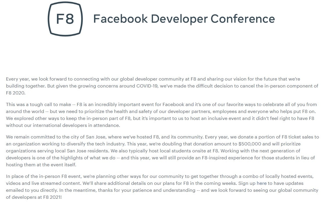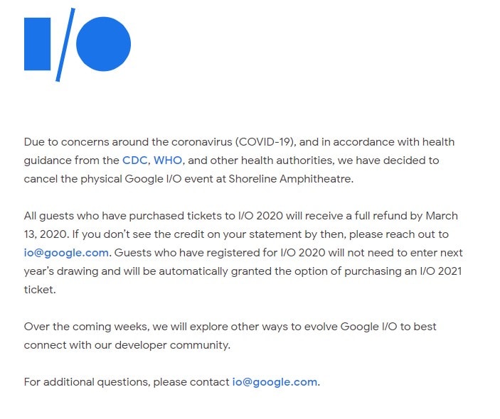 Due to the ongoing Coronavirus outbreak (COVID-19), many major tech events across the world is being cancelled/postponed one by one, whereas few of the events were changed to online events.